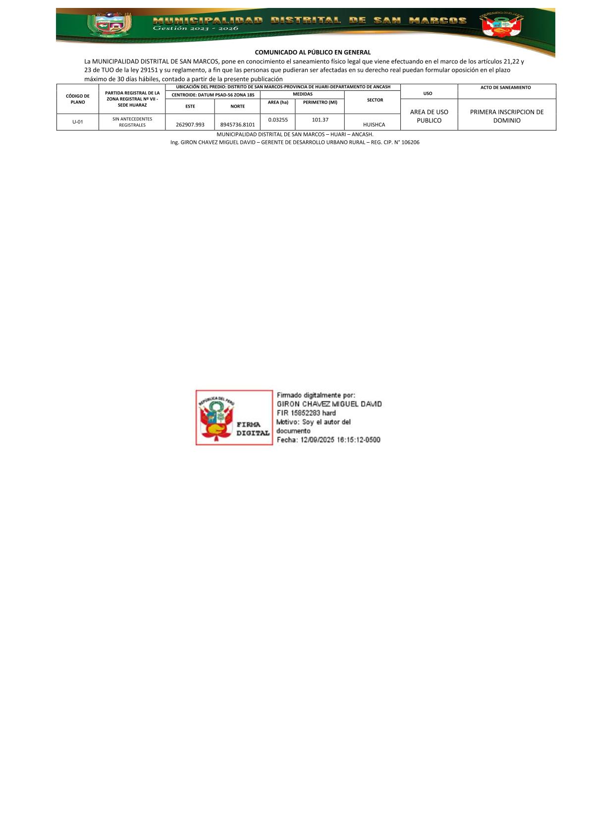 La Municipalidad Distrital de San Marcos te invita a participar en la Segunda Audiencia Pública Descentralizada, un espacio de transparencia y rendición de cuentas donde se presentarán los avances de gestión y se atenderán las consultas formuladas por la ciudadanía.